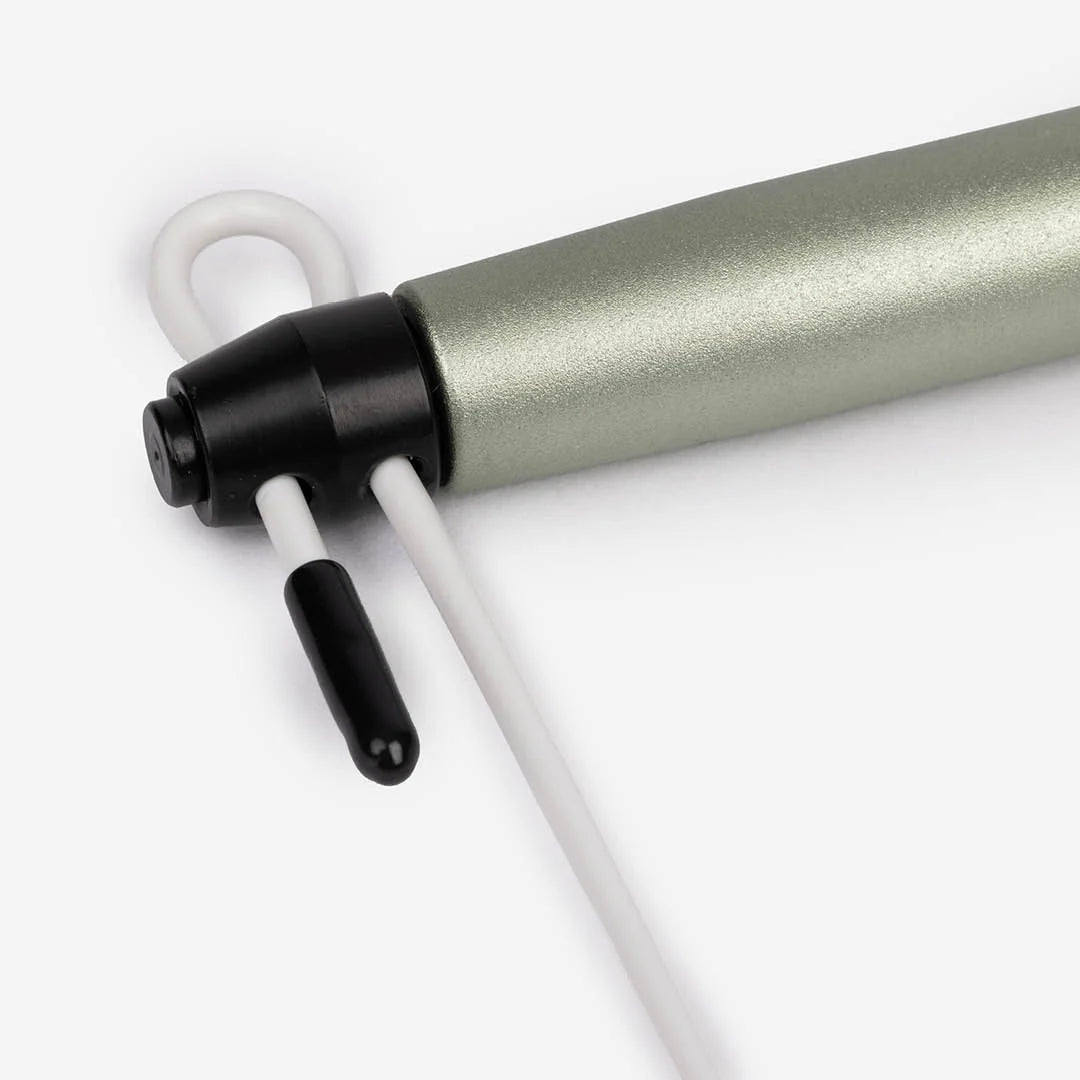 Comba rápida fabricada en aluminio con doble rodamiento y sin llaves, comba autoajustable. Ahora con juntas tóricas para mejorar su agarre y con un diseño del puño más ergonómico para una perfecta ejecución de nuestros saltos dobles. Extremadamente rápida y ligera